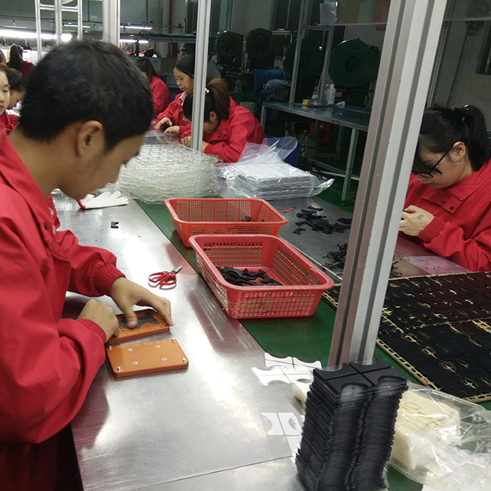 這款異形硅膠腳墊原料也是一款背3M膠硅膠制品,同樣是使用環(huán)保硅膠原材料,在成型模壓之后,由于表面沒(méi)有絲印工藝但是背部需要背膠,于是直接送到噴涂車間噴膠水,再拿到硅膠裝配車間拆邊,拆完邊裝配人員便根據(jù)治具手工背膠,廠內(nèi)人員200人量不是很大的時(shí)候我們?nèi)斯ぱb配效率更快,質(zhì)量更高,可以為客戶節(jié)約昂貴的機(jī)器成本。