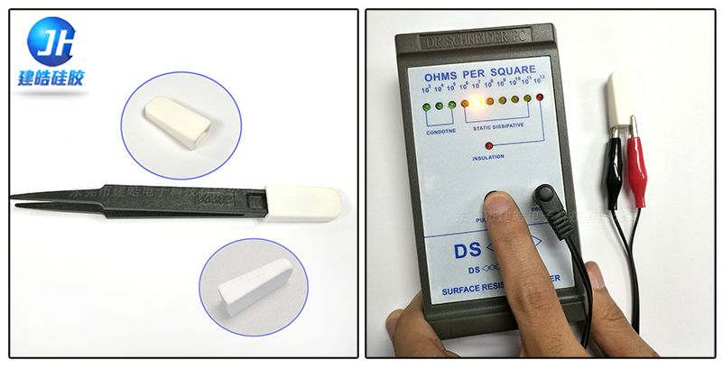 其實(shí),那些防靜電異型硅膠件都是模壓成型而成,要知道模壓成型不僅可以做各種形狀的硅膠件,還可以做各種顏色。所以做白色肯定是小意思啦!建皓就曾為客戶開模定制過一款防靜電硅膠護(hù)套。如下圖,該款硅膠套是一款防靜電硅膠鑷子套。電阻值能達(dá)到106至108之間。